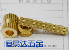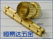 嵌装圆螺母,又称嵌装铜螺母,标准号为GB/T809-88,它分为通孔和盲孔两型式,表面采用了直纹及中间开槽的方案。