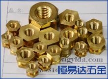 恒易达五金公司有着多年生产各种铜螺母及铜嵌件的经验,可以根据客户提供的图纸或样品订做各种复杂的铜螺母,我们生产的各种铜螺母和铜嵌件都是精密自动车床一次成型,产品质量完全可以达到出口标准,材料符合欧盟环保要求。
