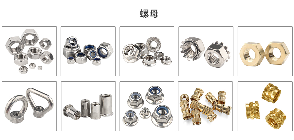 螺母是螺帽,与螺栓或螺杆拧在一起用来起紧固作用的零件,所有生产制造机械必须用的一种原件.螺母的种类繁多,我们常见的有国标,英标,美标,日标的螺母.螺母根据材质的不同,分为碳钢、高强度、不锈钢、塑钢等几大类型根据产品属性对应国家不同的标准号分为普通非标、(老)国标、新国标、美制、英制、德标。由于品种太多 附常规螺母图片参考: