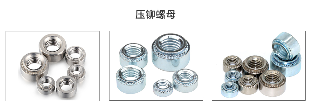 压铆螺母:又称花柄螺母,通过压铆的方式固定于薄板,广泛应用于机箱机柜\钣金\及其它冲压件,其行业遍及通信\汽车\网络设备等。